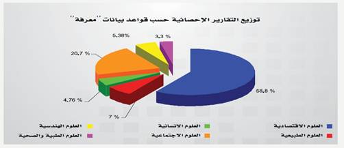 و هذه التقارير توفر البيانات و المؤشرات الإحصائية في المجالات الاقتصادية والمالية و التعليمية، الاجتماعية والسياسية و السكانية، العلمية والتكنولوجية، وغيرها . و تتوزع هذه التقارير الإحصائية المشمولة في قاعدة المعرفة العربية الإلكترونية على القواعد الرئيسية.