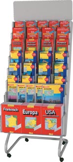 This four level display table is made from wooden laminated material and 48mm powder coated tubular metal. It is ideal for presentation of new titles, bestsellers and special offers.